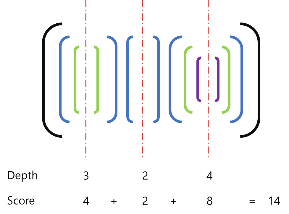 - (A) has score 2 * A, where A is a balanced parentheses string.