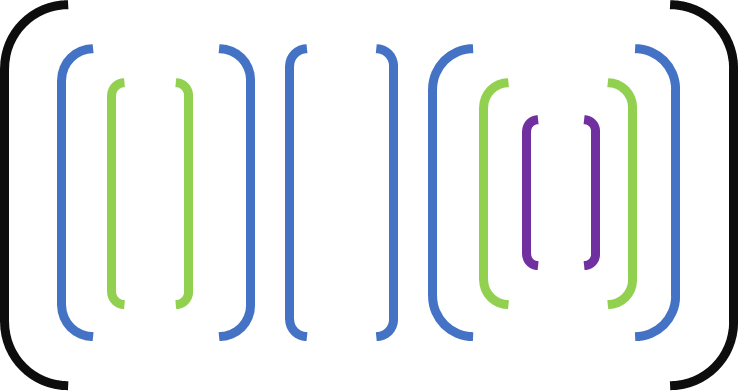 검은색 괄호는 깊이가 1, 파란색은 깊이가 2, 초록색은 3, 보라색은 4다.